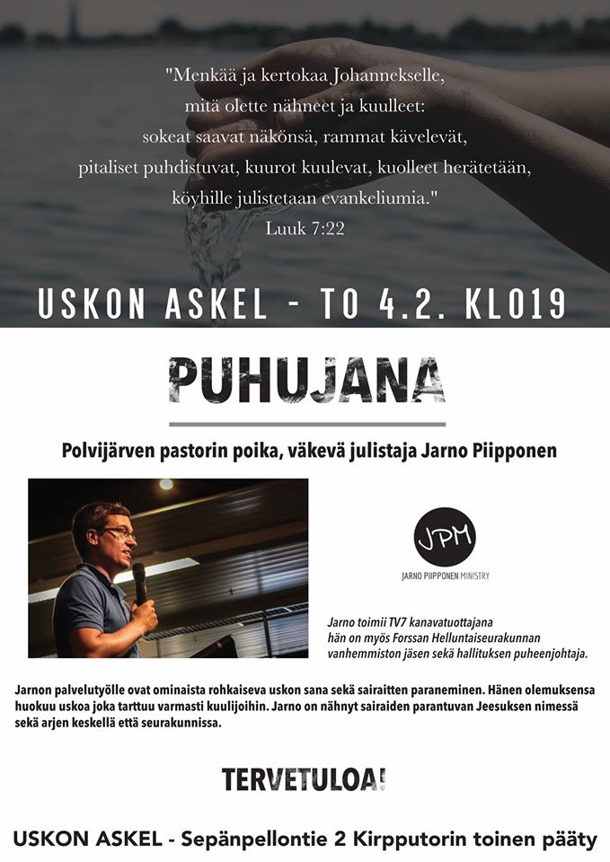 « Kaikki Tapahtumat Tämä tapahtuma on mennyt. Uskon askel 4.2.2016 @ 19:00 - 21:00 « Come Together -ilta Come Together -ilta » + Google-kalenteri+ iCal-vienti Tiedot Päivämäärä: 4.2.2016 Aika: 19:00 - 21:00 Tapahtumapaikka Uskon askel Sepänpellonkatu 2. Pori, + Google Map